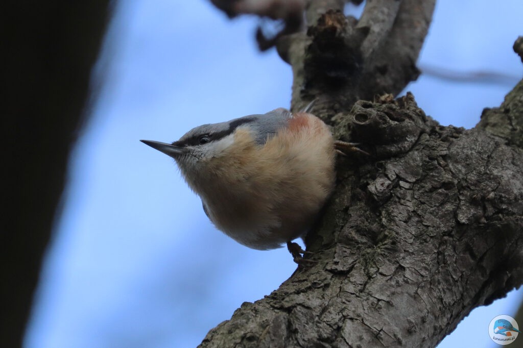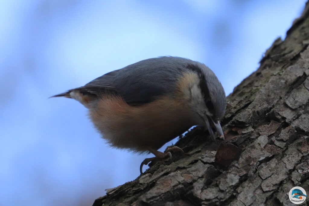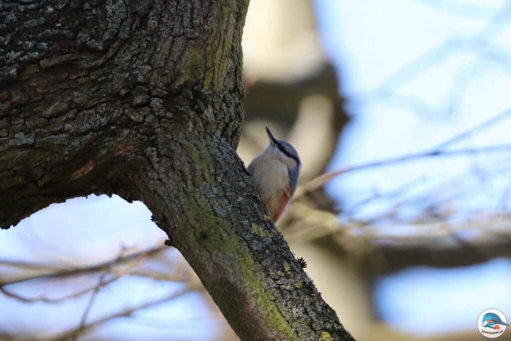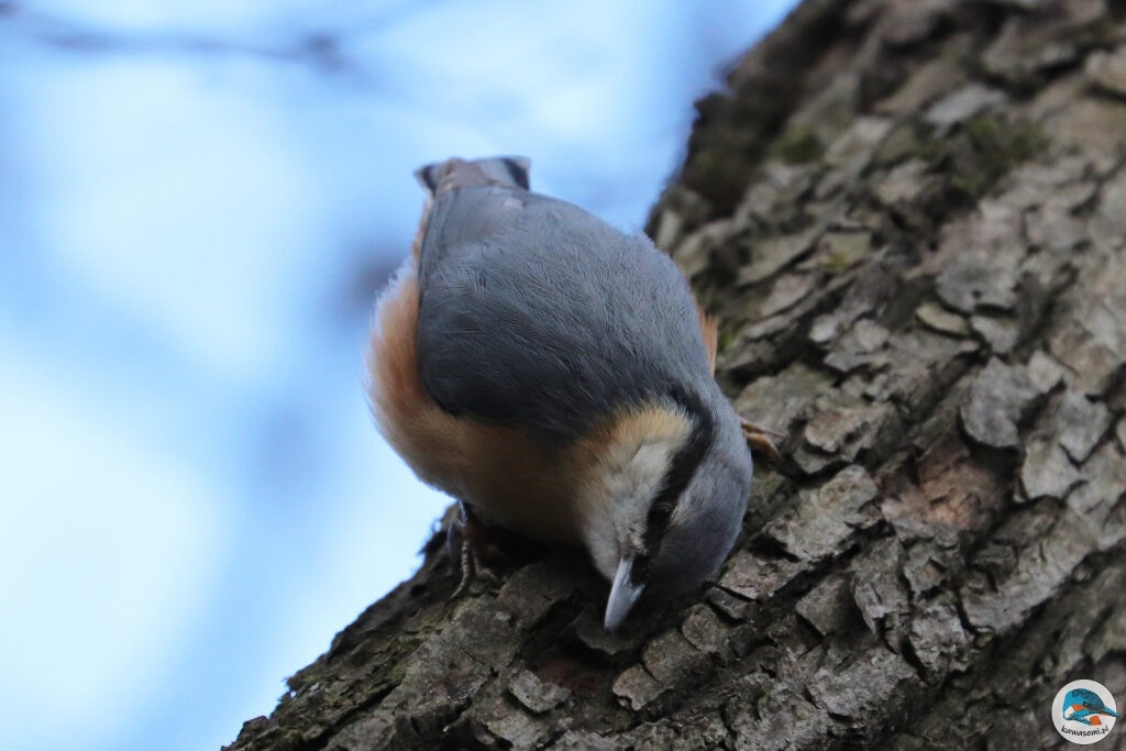 Wyjścia na ptaki w zimowym krajobrazie zawsze są trochę inne od tych w cieplejszych porach roku. Pomijając to, że dni są znacząco krótsze i zimniejsze, to wiele gatunków odlatuje na okres zimowy i wrócą do nas dopiero wiosną. Mamy trochę zimowych przybyszów, których spotkamy u nas właściwie tylko teraz, ale możemy też obserwować gatunki, które są u nas przez cały rok. Wśród tych drugich jest kowalik (Sitta europaea; ang. Eurasian nuthatch) – ptak, który zasłynął z tego, że jako jedyny nasz gatunek potrafi nie tylko wyjątkowo dobrze wspinać się po drzewach, ale także schodzić z pni drzew głową w dół. W przeciwieństwie do pełzaczy i dzięciołów, które wykorzystują sztywne pióra ogona jako podporę do poruszania się po pniu, kowalik używa głównie ostrych pazurów.