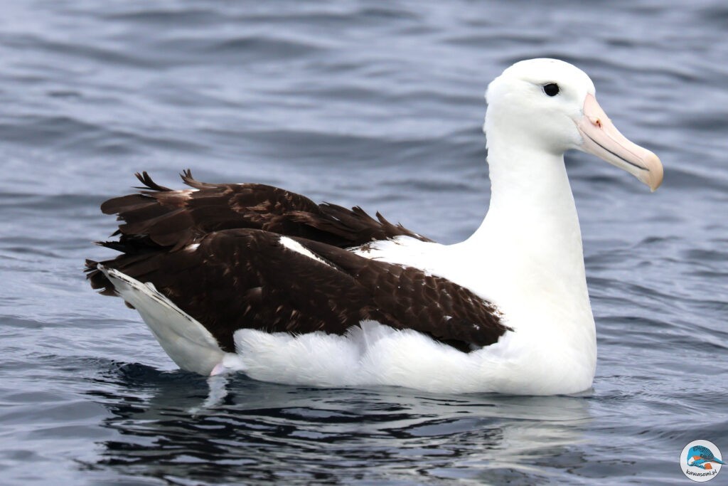 Albatros ciemnoskrzydły (Diomedea sanfordi, ang. Northern Royal albatross/Toroa) to drugi gatunek albatrosa (po albatrosie szarodziobym), który mogłam obserwować na wodach Morza Tasmana. Gatunek ten spędza około 85% życia z dala od lądu, a jego zasięg występowania jest bardzo szeroki i obejmuje wody Oceanu Południowego. Mając imponującą trzymetrową rozpiętość skrzydeł przemierza oceany w poszukiwaniu kałamarnic, skorupiaków i ryb na powierzchni wody. W tym celu może pokonać nawet 190 000 km rocznie.